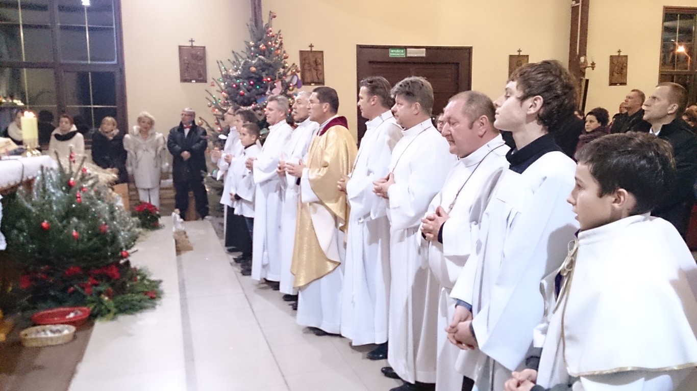 W Noc Wigilijną do naszej kaplicy przybyli wierni, by świętować najważniejsze Narodziny w roku. Gdy weszła procesja, rozbrzmiała kolęda „Bóg się rodzi”, a Ksiądz Proboszcz uniósł figurkę Dzieciątka Jezus i złożył ją w żłóbku. Wysłuchaliśmy wzruszającego kazania, z radością śpiewaliśmy piękne kolędy, a na zakończenie wspólnie przy opłatku otworzyliśmy swoje serca, by złożyć sobie piękne świąteczne życzenia…