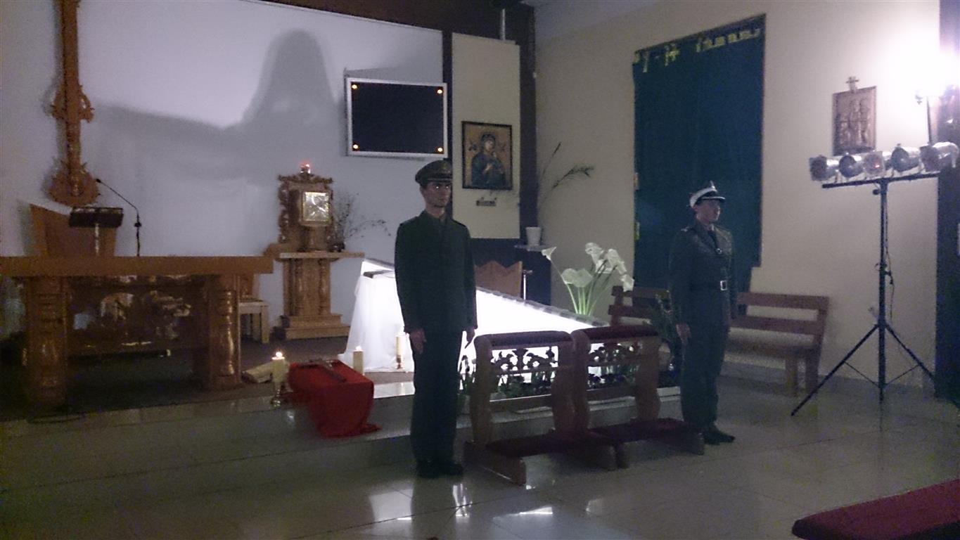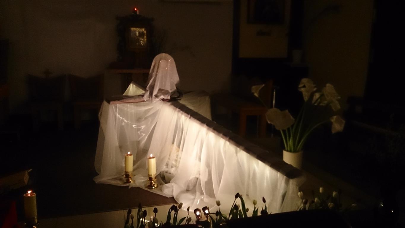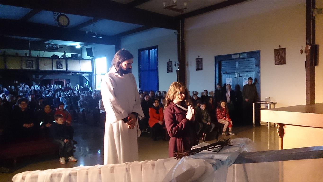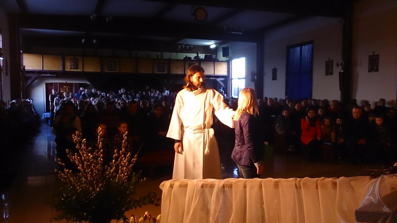 Wielki Piątek to dzień męki i śmierci Jezusa. Wierni zgromadzili się na liturgii Wielkiego Piątku, składającej się z liturgii słowa, podczas której odczytana została Męka Pańska z Ewangelii Św. Jana, adoracji krzyża i Komunii Świętej. Po liturgii słowa członkowie scholi przedstawili dramę ewangelizacyjną nawiązującą do upływającego czasu naszego ziemskiego życia. Zakończona słowami „Bóg ma czas dla Ciebie, znajdź czas dla Niego, póki jeszcze czas… Żyjemy po to, by umrzeć, umieramy po to, by żyć…”, została pięknie skomentowana przez Księdza Proboszcza.